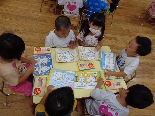 月刊絵本の付録の塗り絵にも挑戦!!