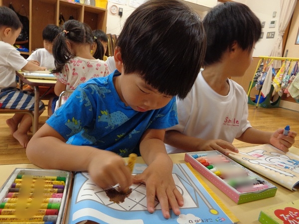 はみ出さないように塗るのは難しいですが、集中して頑張っていますよ✨