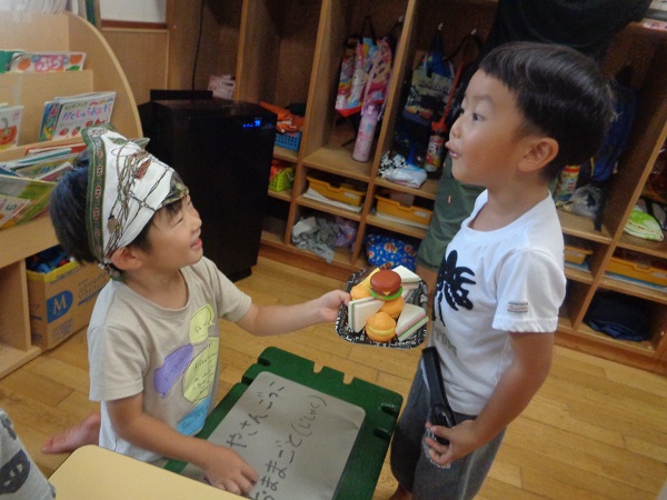 「いらっしゃいませ~」とお店屋さんになりきります■