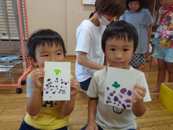 力強くペッタンとしていた子は、おおきなブドウの実ができ、ペタペタスピードよくする子は小さなブドウの実が出来ていましたよ☺