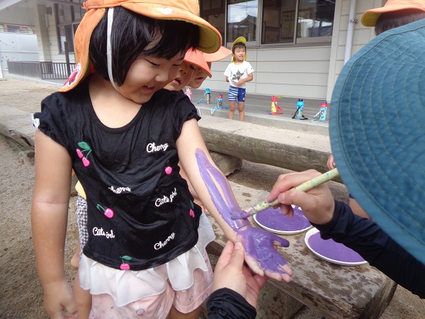 「気持ちがいい~」と、絵の具を筆で塗られる感触に、にこにこでしたよ■
