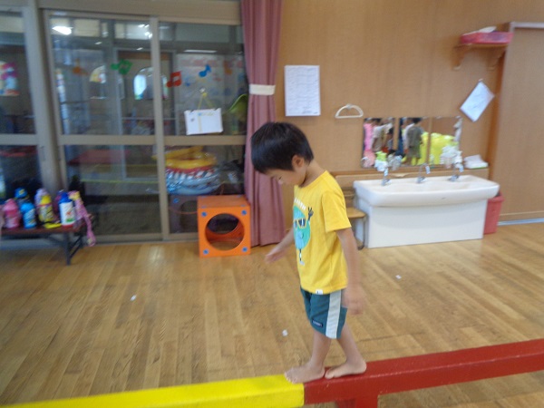 前のお友だちを抜かさずに待つことも少しずつ上手になってきています。