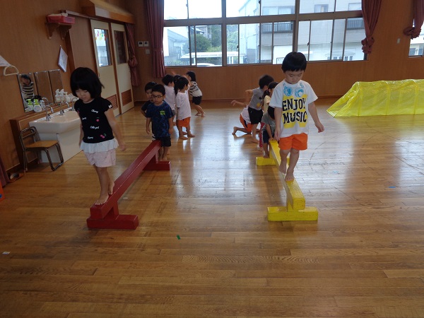 昨日幼児園庭でサーキット遊びをして大人気だったので、今日は遊戯室でサーキット遊びをしました✨