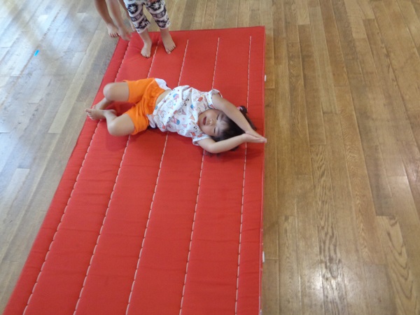 斜めに転がっていくと「ワニに食べられちゃう~」と言い、真っ直ぐに戻り楽しみながら転がっていました。