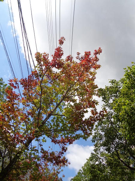 あすてらすの遊歩道を歩いていると、「葉っぱが赤くなってる!」