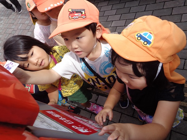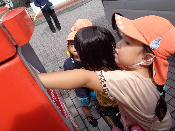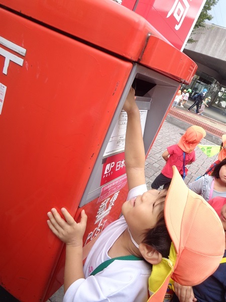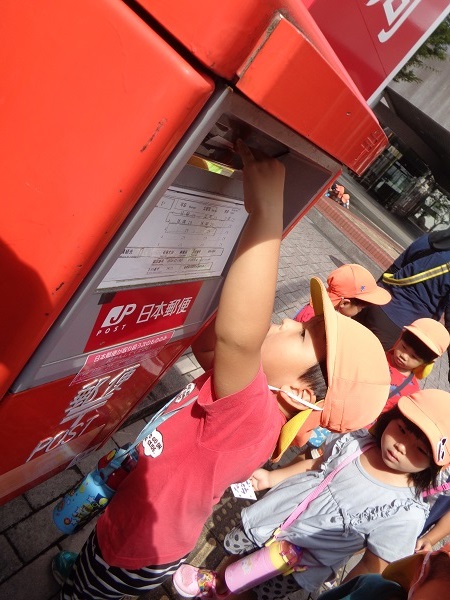 背の高いポストに一生懸命手を伸ばして、嬉しそうに投函していましたよ♡