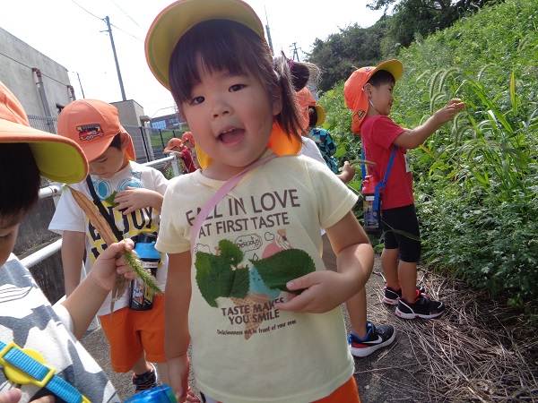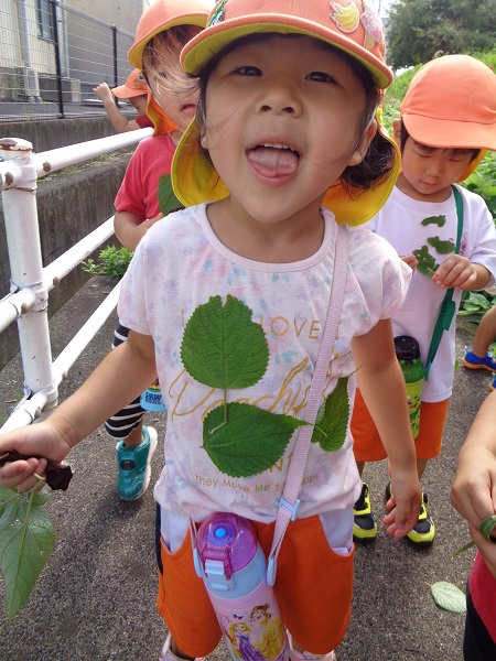 葉っぱを服にくっつけておしゃれをしているお友だちも...❤