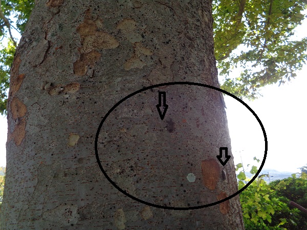 こちらではてんとう虫ではなくカメムシが木にとまっていました!