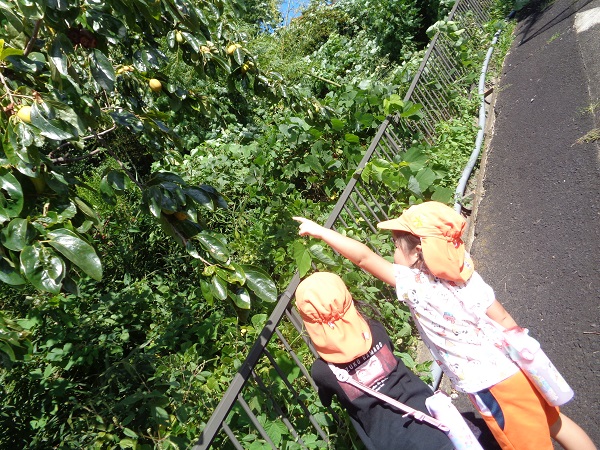 少し前はまだ青かった柿が色づいていることに気付いて大喜び❤