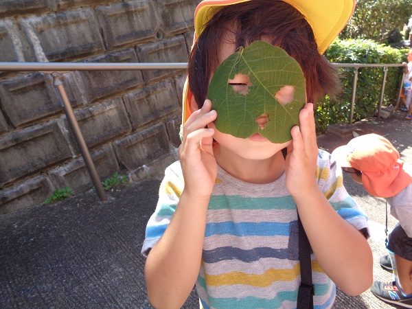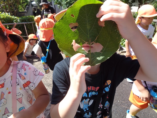 大きな葉っぱでお面を作って...私は誰でしょう??