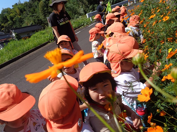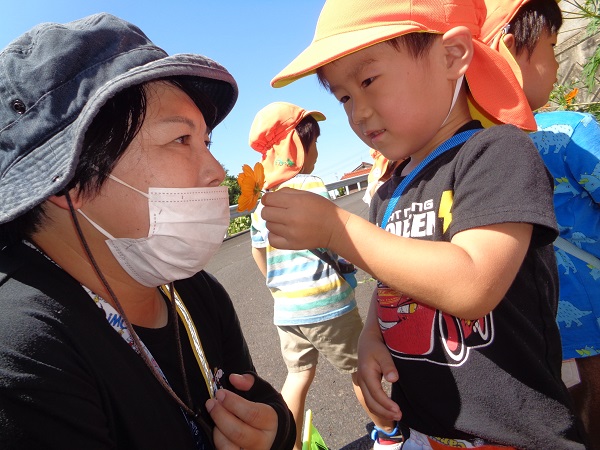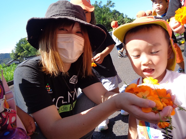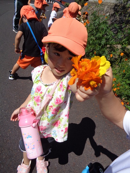 一日保育士体験に参加して下さったお母さんに両手いっぱい♡コスモスのプレゼント❁