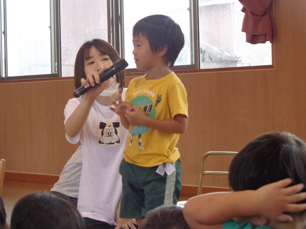 お楽しみの時間では保育者によるシアターと、ろけっと組さんのパラウェーブを見せてもらいました■
