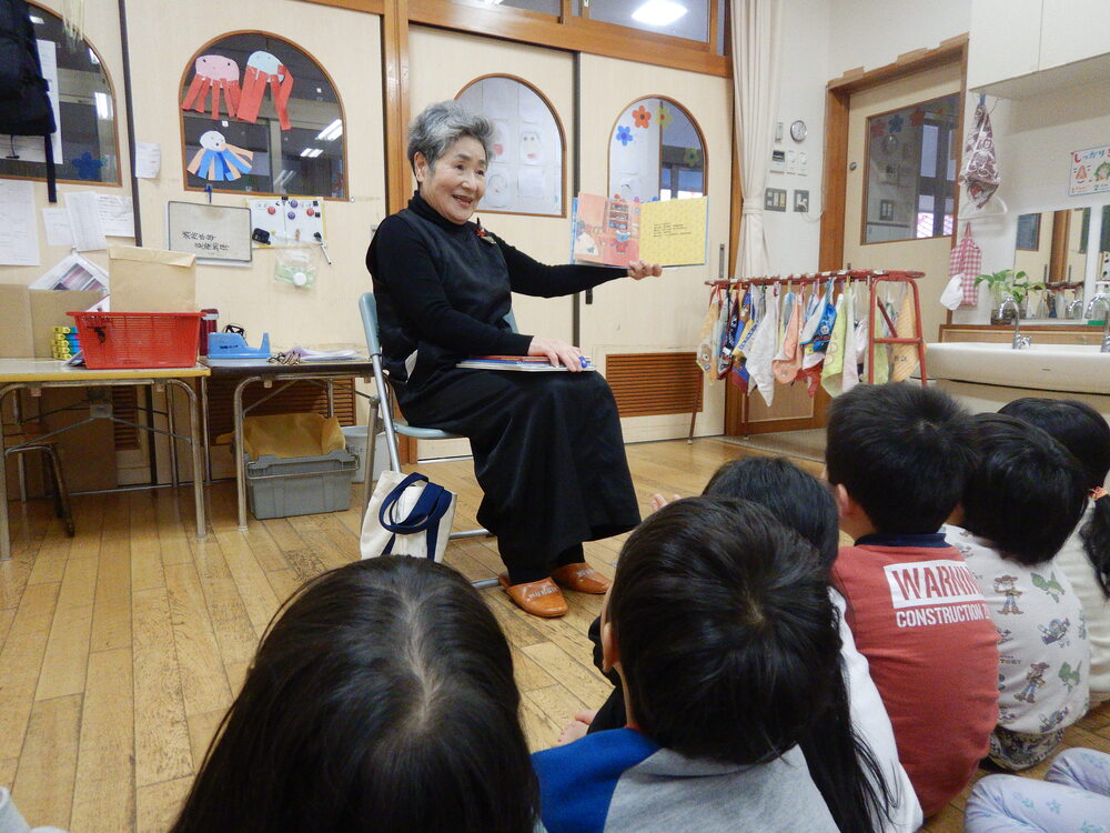 みんなが楽しみにしている田中先生の絵本の読み聞かせがありました。