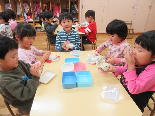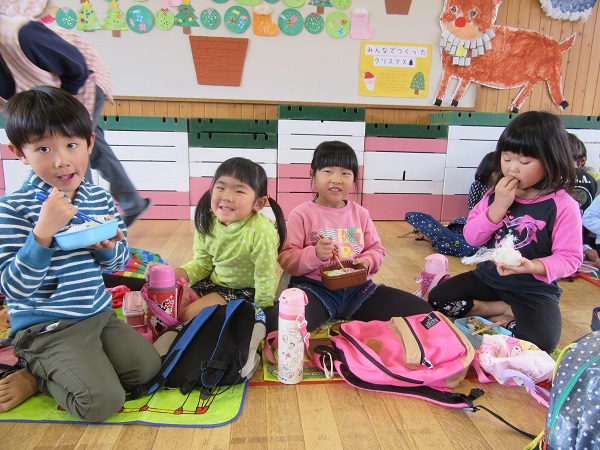 2017年12月08日 お弁当ごっこ☆まずはみんなでおにぎり作り■すっかり手慣れた様子のひこうきさん☺おかずもお弁当箱の中におさまるように上手に詰めていきます✨シートを広げて大好きなお友達と食べるお弁当は格別です♡「お腹いっぱいになったわ~■」と大満足の子ども達でした☆