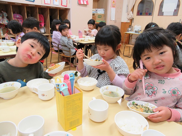 2018年01月11日 たくさん遊んだ後は...お待ちかねの給食の時間■✨「いっぱい走ったけお腹空いた~!!」食べるの大好きなひこうきさん♡今日もあっという間にぺろりです■♩「あ~美味しかった■明日の給食なにかな~?」