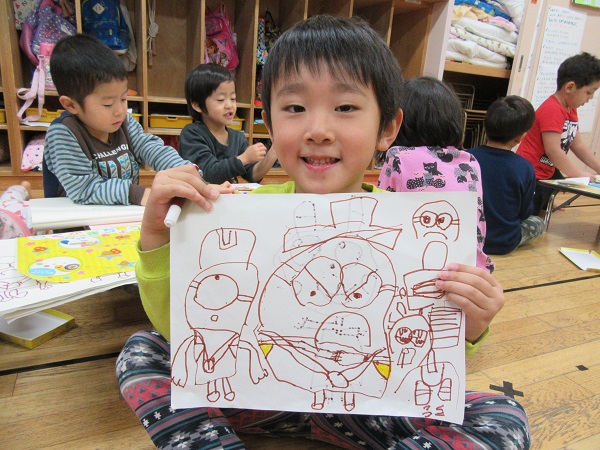 2018年01月22日 なにして遊ぼうかな♪今日はお部屋でのんびりゆったり...☺お絵描きや粘土遊びを楽しみましたよ。「先生見て見て~描けた✨」お友達とのお喋りも弾み、とってもかわいい笑顔のひこうきさんです♡