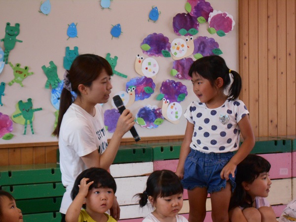 2017年06月29日 誕生会がありました。今日は6月生まれの誕生会がありました。緊張しながらも、しっかりインタビューに答えてくれました!一生懸命聞くひこうき組さんですよ。保育士による手品ショーも見ました。お祝いされるのってうれしいね■