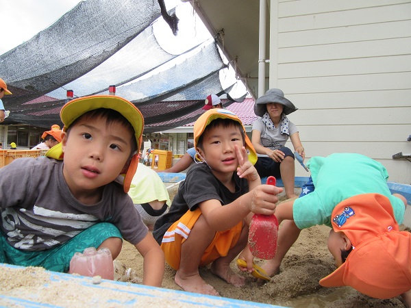 2017年09月01日 園庭遊び♪砂山を作ったり、色水遊びをしたりそれぞれ好きな遊びを楽しみました♡お友達と遊ぶのがとっても楽しいひこうきさんです☺今日で一日保育士体験も最終日。お忙しい中、たくさんのご参加ありがとうございました♬