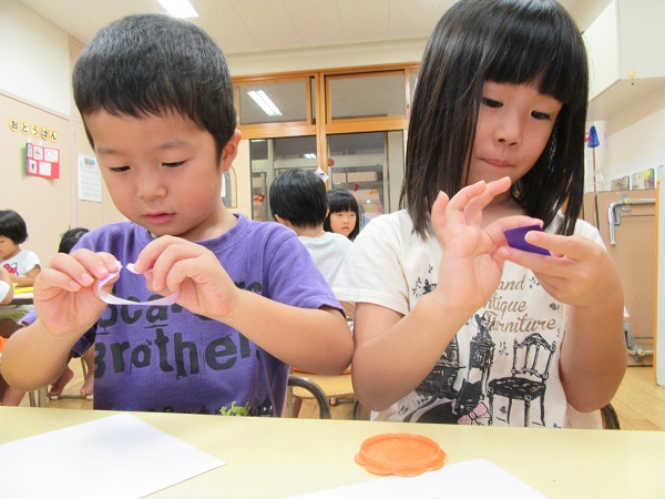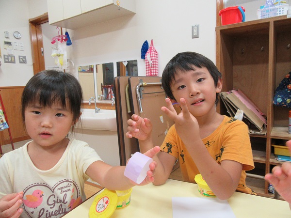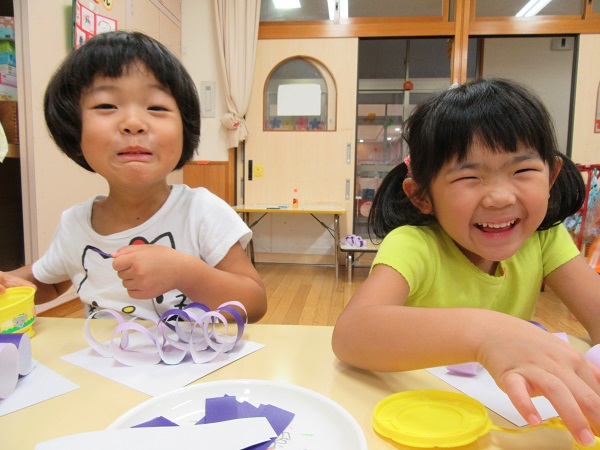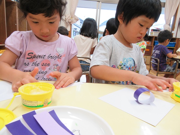 2017年09月07日 秋の味覚!折り紙を使ってぶどうを作りました■頑張って作るぞー!!のりをつかって折り紙を輪っかにしていきます。とっても真剣なひこうきさん...可愛い作品が出来たので是非お部屋を覗いてみてくださいね♡