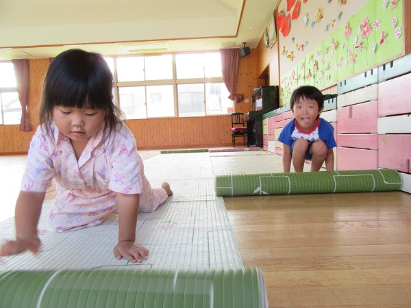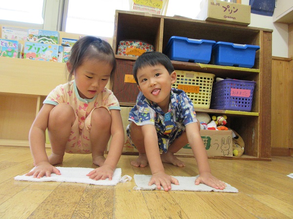 2017年09月14日 お当番頑張ってます☆火災の避難訓練がありました。「お・は・し・も」のお約束を教えてもらいましたよ。お当番の日はいつもやる気満々のひこうき組さん!!雑巾がけや布団敷きなどいろいろなお仕事があります✨みんなとっても働き者です☺