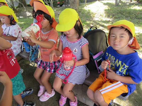2017年09月21日 お散歩♪ばす組さんと宮崎公園に行きました!手を繋いで元気に出発✨公園では虫探しをしたり走り回ったり...元気いっぱいのひこうきさんでした♬いっぱい遊んだ後はお茶が美味しいな~♡またお散歩に行こうね☆