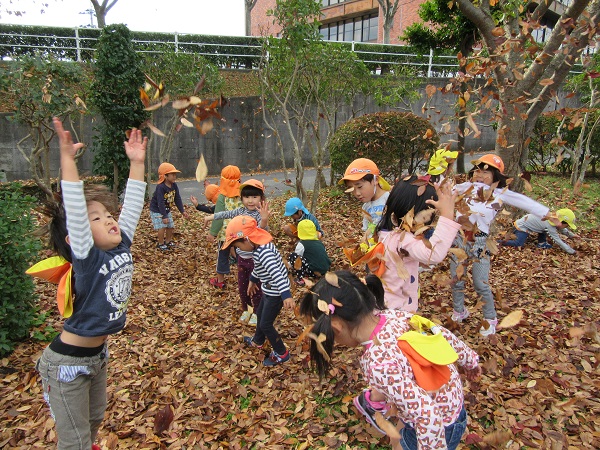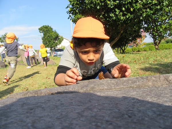 2017年11月07日 宮崎公園☆宮崎公園へお散歩に行きました■鬼ごっこで走り回ったり、木の実屋さんを開いたり...セミの抜け殻を見つけたお友達も✨最後はみんなで落ち葉のシャワー■「あ~楽しかった♪」「早く帰って給食食べよ!」と大満足のひこうきさんでした♡