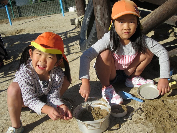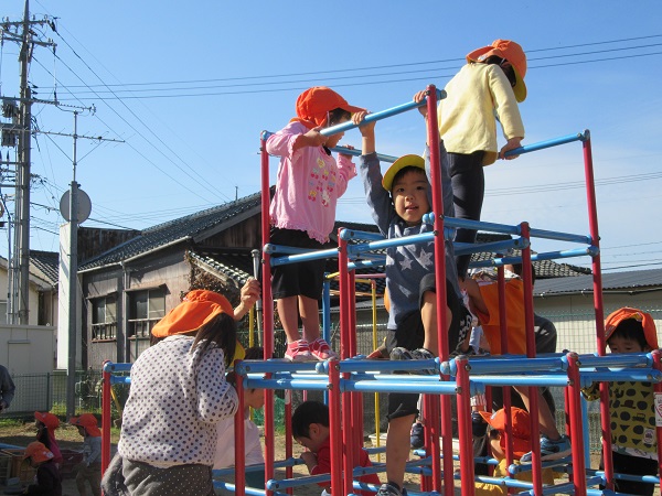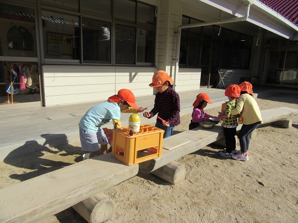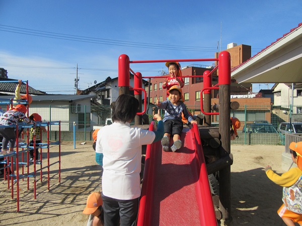 今日は園庭で遊びました。みかん組も一緒だったので、やさしく接してあげていましたよ