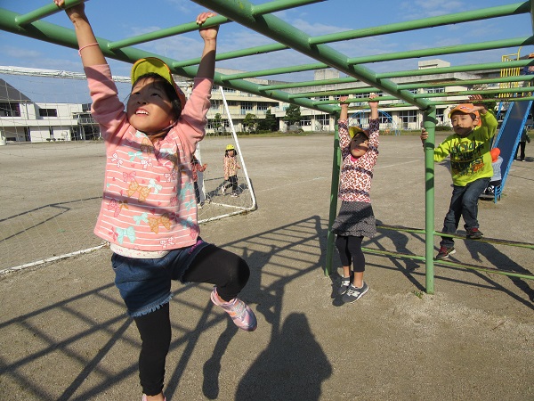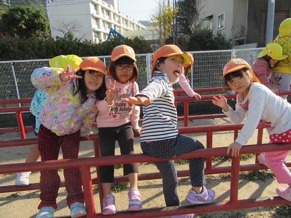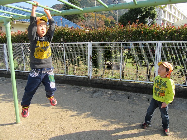 2017年11月27日 久しぶりのお散歩♪ろけっと組さんと大田小学校へ行きました☺雲梯の練習に励むひこうきさん...失敗しても何度も何度も挑戦!努力家です✨「頑張れ!もうちょっと!」「落ちちゃう~先生助けて~■」久しぶりのお散歩楽しかったね♡「明日もお散歩行こうや■」とにこにこの子ども達です☆