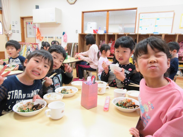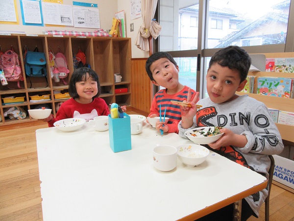今日からまた新しい一週間!お休み中におうちであった楽しいことをお友だちとお話しながら給食を食べます。