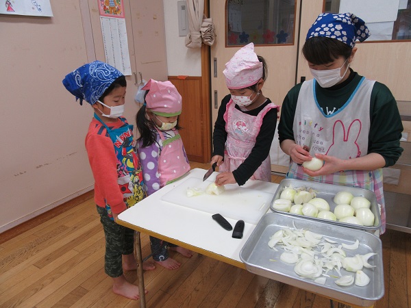 2018年03月20日 おわカレー☆今日はお別れ会!ばす組・ろけっと組さんと一緒にカレー作りをしました■3チームに分かれてたくさん野菜を切りましたよ♪包丁を持つ手も野菜を押さえる猫の手も、すっかり慣れた様子のひこうきさん✨会食の時間もお喋りが弾みとっても楽しい時間でした♡「僕たちもはやくろけっと組になりたい■でも今のろけっとさんとお別れするのは寂しい...」そんなちょっぴり複雑な気持ちのひこうきさんです☺