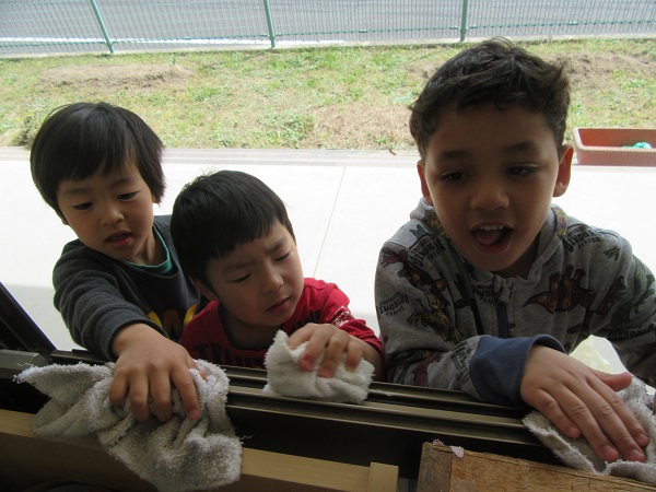 2018年03月29日 ピカピカに...☆一年間お世話になったロッカーとひこうき組のお部屋を掃除しました!「ありがとうね~☺」と毎日使ったロッカーに感謝の気持ちを込めてお掃除✨一生懸命な後ろ姿も可愛いですね...♡窓の冊子や網戸まで...細かいところまでピカピカにしてくれましたよ■明日はいよいよ最後の一日!「ろけっと組になるんだよ」とドキドキワクワクしている子ども達です♡
