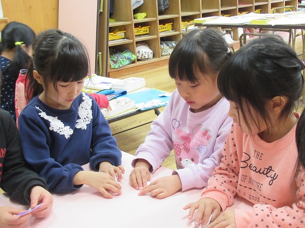 2019年03月04日 作るの楽しい!今日はあいにくの雨☂...お部屋で製作をしました。画用紙を切ったり...折り紙を折ったり。この一年で作ったものを振り返り、「あっ、覚えてる!」と思い出しながら製作しましたよ!いろいろなものが出来ました!その後はみんなの大好きな転がしドッヂボール。ばす組さんと一緒にジャンケン列車も楽しみました(^▽^)明日は晴れるといいね☀