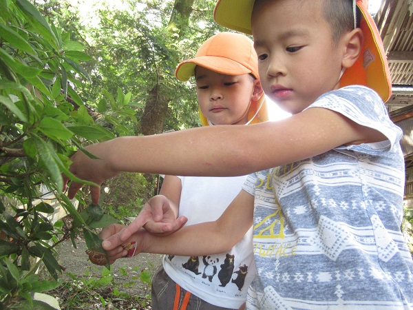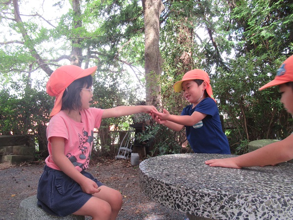 こちらでは、「キャベツあげる❤」と、給食ごっこが始まっていました。