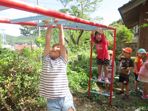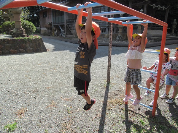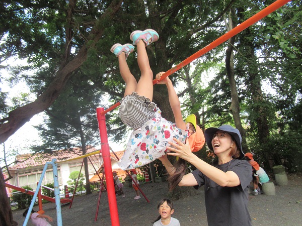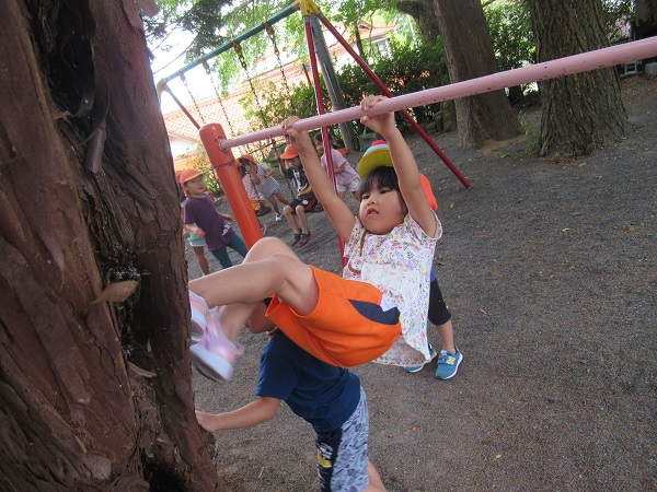 ブランコや雲梯、鉄棒など好きな遊具で遊びました。
