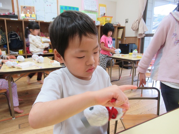 雪遊びをした経験を思い出しながら、製作を楽しんだ子どもたち。