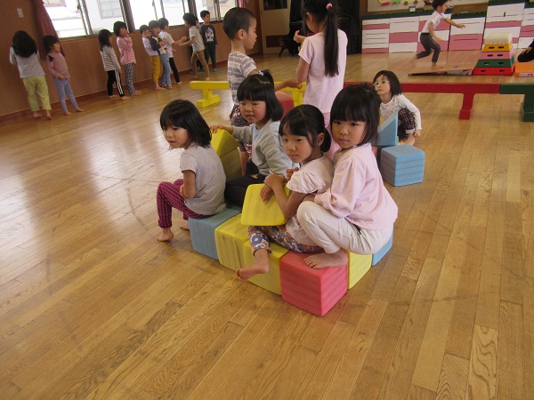 プラフォーミングは、みんなで協力しながら大きな積み木を運んだり組み立てたり・・・