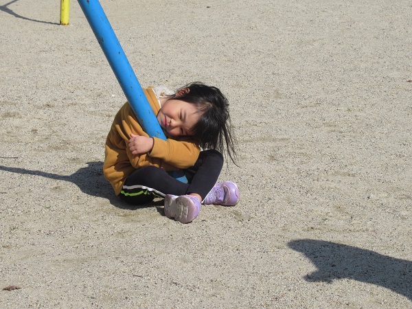 暖かくて、眠くなってきた...と、登り棒の柱にくっついてひと休み...■