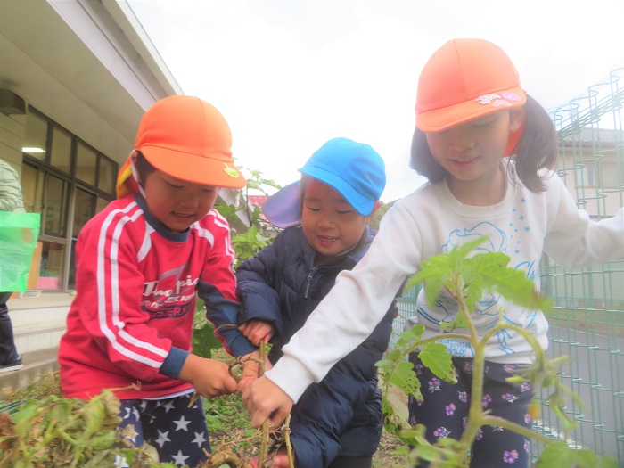ひこうき組で育てていたトマトの苗を抜き取りました。