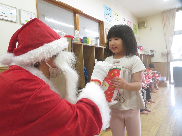 「わぁ~~本物のサンタさんだ~~✨」と目をキラキラとさせながら嬉しそうに見つめる、ひこうき組さんでした。
