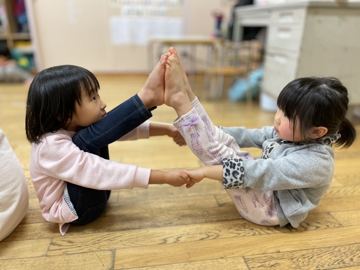 二人組で行う技では、お友だちと息を合わせ、気持ちを一つに・・・