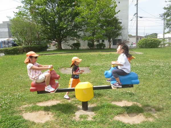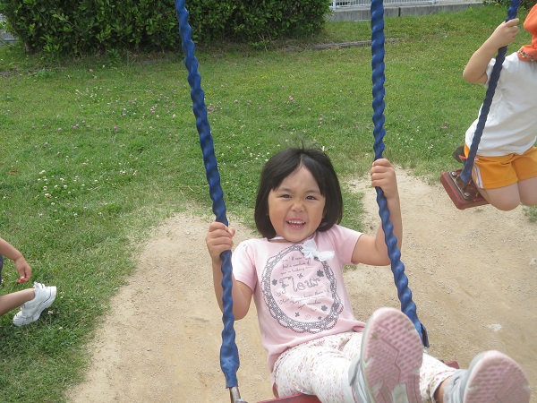 公園に到着すると、お茶を飲んで早速、遊具で遊びます♪