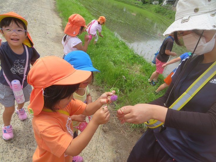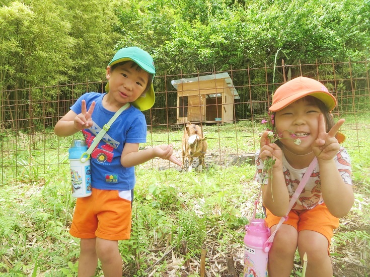 梅雨ならではのお散歩を楽しみ、ヤギさんとの新たな出会いに喜ぶ子どもたちなのでした■