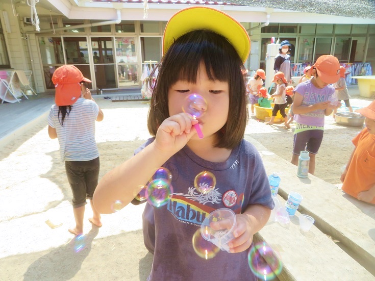 お外は真夏のような暑さ・・・まずはみんなで水を浴びました!