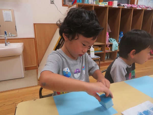 それをスポンジに付けて、川の流れのように、右から左へと滑らせていきます♪