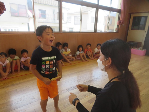 泥んこ・水遊びをした後は遊戯室で、『プールをがんばったで賞』をもらいました✨