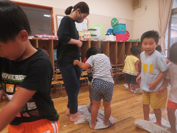 体を上手に使ったり、新聞紙を半分に折って手や指を使ったりと楽しいだけでなく