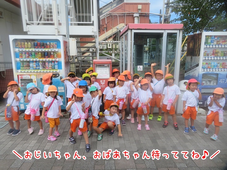 はがきに、おじいちゃん、おばあちゃんの絵を描いたので、ポストに投函しましたよ☆