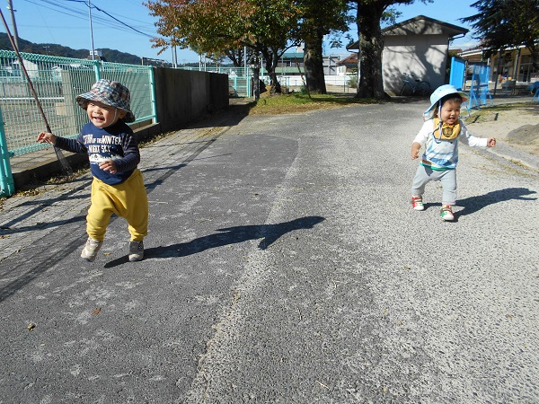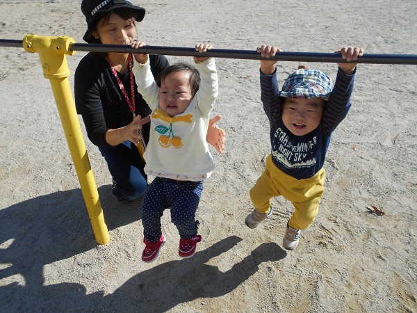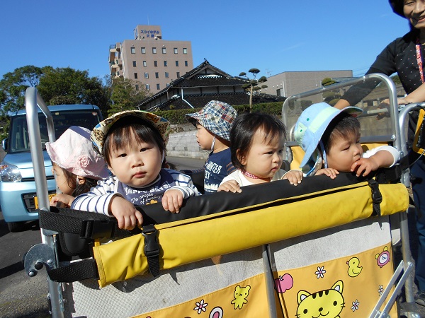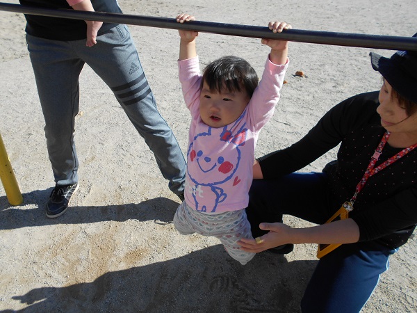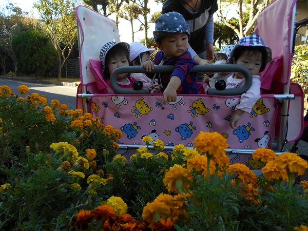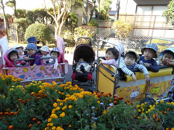 2017年11月01日 おさんぽ♪今日は大田小へ行きました☆散歩車に乗ってGOGO!!!「あ!」お花を見つけましたよ✨お花と一緒にみんなで「ハイチーズ✌☆」小学校の校庭では鉄棒に挑戦!頑張ってぶら下がるお友だちもいました✨いいお天気で、とても気持ちの良いお散歩になりましたよ♡