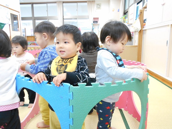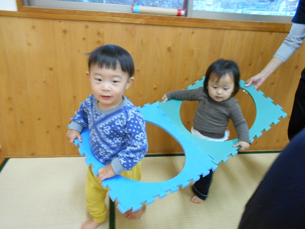 2017年11月08日 プラポイントで遊んだよ♪お部屋でプラポイントを使って遊びました♬お家を作って、みんなで入って嬉しそう♡プラポイントの〇のところを上手にくぐって、にっこり☺お友だちと一緒に電車ごっこもしましたよ!小さなお友だちにも優しいいちご組さん♡「ばぁ!」と声をかけて遊んでくれました♪プラポイント、楽しかったね♡