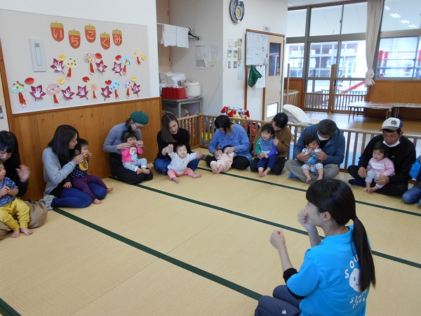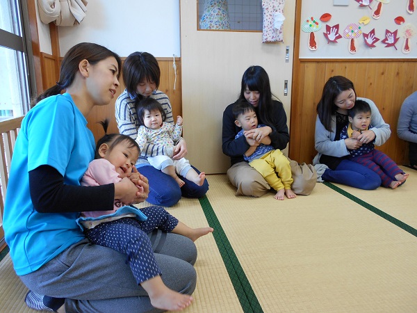 最初はお父さん・お母さんと一緒に手遊びをしましたよ♪